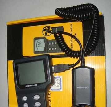 AR826数字风速计产品介绍:独立叶轮分体式风速计大屏幕LCD显示动态模拟棒条显示 技术参数: 风速测量范围 0.3-45m/s风速测量误差 ±3%?0.1dgts自动/手动关机功能 √风速单位选择 M/s Ft/min,knots,Km/hr,mph背光显示功能 √/最小风速测量 √平均风速和当前风速测量 √解析度 0.1m/s数据保持功能 √供电 9V碱性电池LCD尺寸 59.0*51.0mm产品颜色 深灰产品净重 240g产品尺寸 170*160*49mm包装方式1(中国) 彩盒包装标准外箱容量 20标准外箱尺寸 55.0*45.0*32.5cm